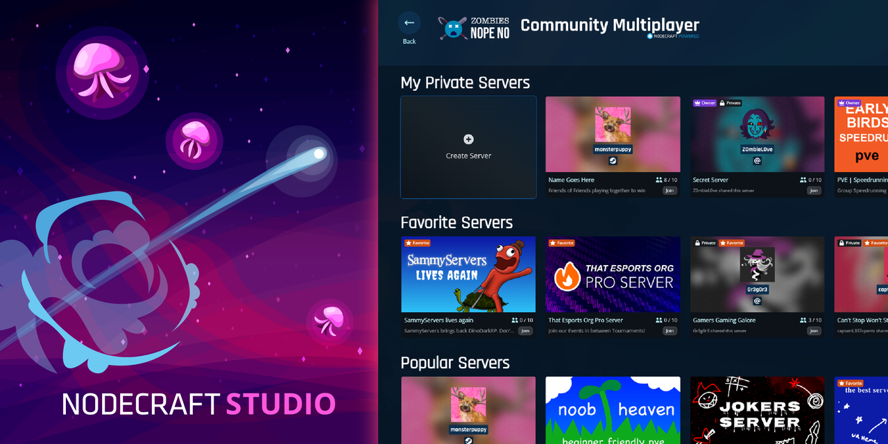 If you missed it, Nodecraft Studio is built to empower game studios to integrate player-created server creation and discovery into their games; this extends the lifecycle of the game and provides additional revenue to studios in place of traditional cloud bills. You can find out more on our website or by reviewing the developer documentation.
